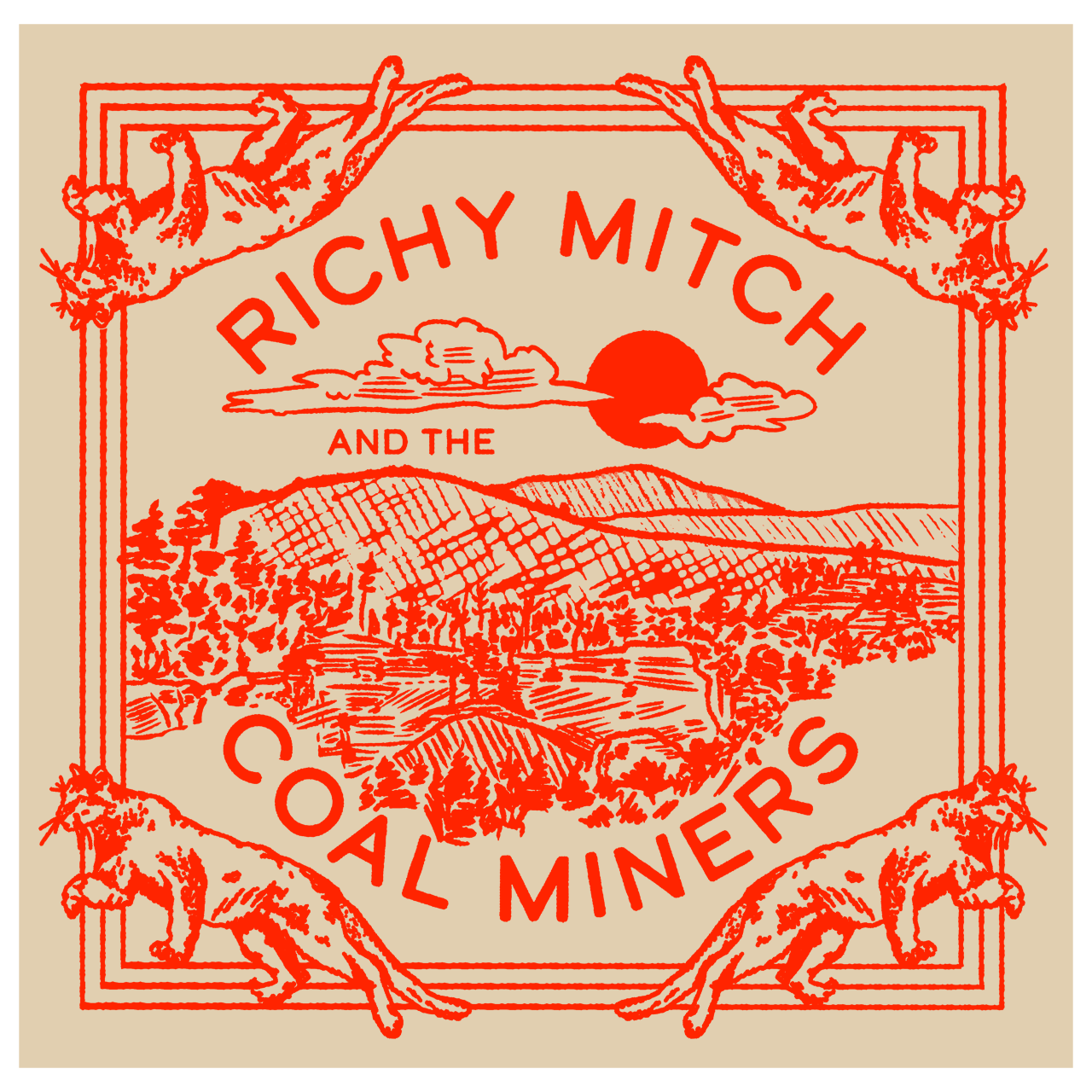 This 22"x22" beige bandana features an orange mountain lion graphic and the Richy Mitch & The Coal Miners name on the front.